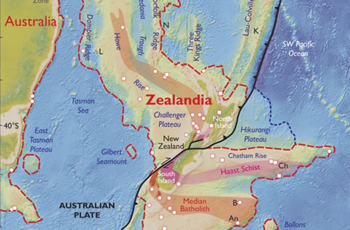 Zealandia non sarebbe un’insieme di frammenti continentali, in parte sommersi: gli scienziati ritengono che sia un continente unitario e sterminato, che, come India, Australia, Antartide, Africa e America del Sud, faceva parte un tempo del supercontinente Gondwana. L’enorme territorio si sarebbe diviso e in parte sarebbe sprofondato nel Mesozoico, tra 60 e 85 milioni di anni fa.