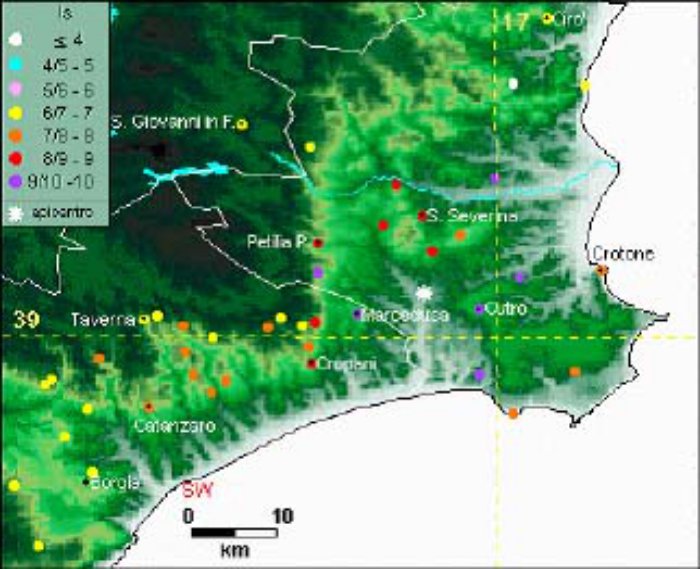 Il terremoto avvenne alle ore 1:15 italiane (18:30 GMT ca.) e colpì la zona nord-orientale della provincia di Calabria Ulteriore Seconda (l’attuale provincia di Catanzaro), causando gravissime distruzioni nei centri del Marchesato. A Cutro, Rocca di Neto, Marcedusa, Mesoraca, Papanice, San Leonardo di Cutro quasi tutti gli edifici crollarono; a Policastro (l’attuale Petilia Policastro), Roccabernarda e San Mauro Marchesato le distruzioni si estesero a gran parte dell’abitato. In altre 40 località circa numerosi edifici crollarono o divennero inabitabili. In particolare, a Catanzaro la scossa causò il crollo di molte abitazioni e lesionò quasi tutte le altre, che divennero in gran parte inabitabili: oltre 150 case dovettero essere ricostruite; a Cotrone (l’attuale Crotone) gli edifici ricostruiti furono più di 100. Lesioni e danni più leggeri si verificarono a Cosenza e in una ventina di altri paesi. A sud dell’area dei maggiori danni, la scossa fu avvertita fortemente nella Calabria meridionale e, più leggermente, in quasi tutta la Sicilia; a nord fu sentita, molto leggermente, fino in Puglia e a Napoli.