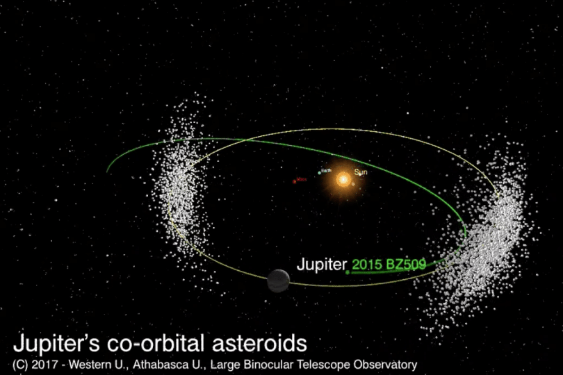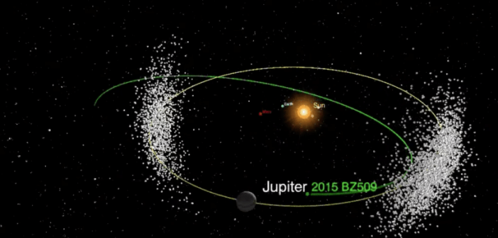 Immaginatevi una piccola Smart lanciata a tutta birra, e in senso inverso, lungo un circuito dove viaggia un gigantesco autoarticolato: qualcosa del genere accade nel Sistema Solare, protagonista un corpo celeste, 2015 BZ509 (per gli amici “Bee-Zed”), un asteroide del diametro di 3 km che percorre attorno al Sole quasi la stessa orbita di Giove e di circa 6.000 altri frammenti rocciosi, ma in direzione opposta. Da almeno un milione di anni, secondo gli astronomi.