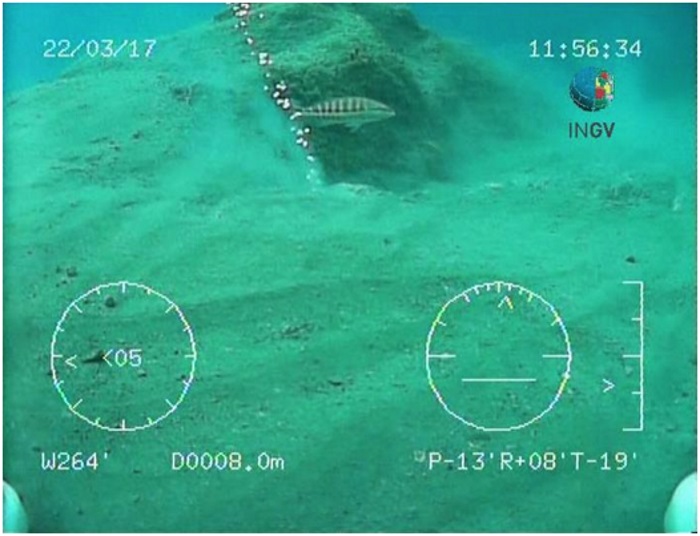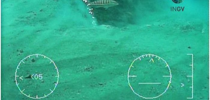 1 – immagine delle emissioni subacquee riprese dal veicolo sottomarino a controllo remoto (ROV) dell’INGV di Portovenere