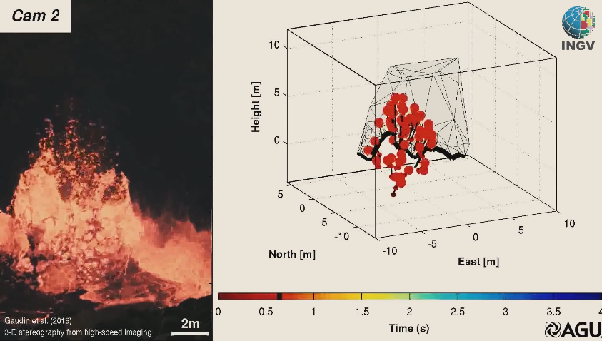 “La recente attività esplosiva al vulcano Etna”, spiega Scarlato, “ha messo nuovamente in evidenza l’importanza di approfondire gli studi su questi fenomeni e di sviluppare tecniche osservative che consentano di raccogliere ogni informazione utile per la ricerca e il monitoraggio in questo ambito”. I sistemi di processamento al computer adottati, hanno permesso di analizzare ogni singolo pixel contenuto nelle migliaia di immagini raccolte, associando le riprese effettuate da due telecamere poste in due punti diversi di osservazione, fino a ottenere una ricostruzione tridimensionale degli eventi esplosivi filmati.