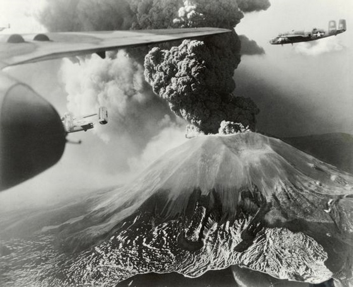 Il Vesuvio erutta per l’ultima volta nel 1944, in pieno conflitto, mentre in Italia arrivano le truppe alleate e i tedeschi sono in ritirata. L’eruzione uccise circa 45 persone e danneggiò 88 aerei alleati che stazionavano nei paraggi.