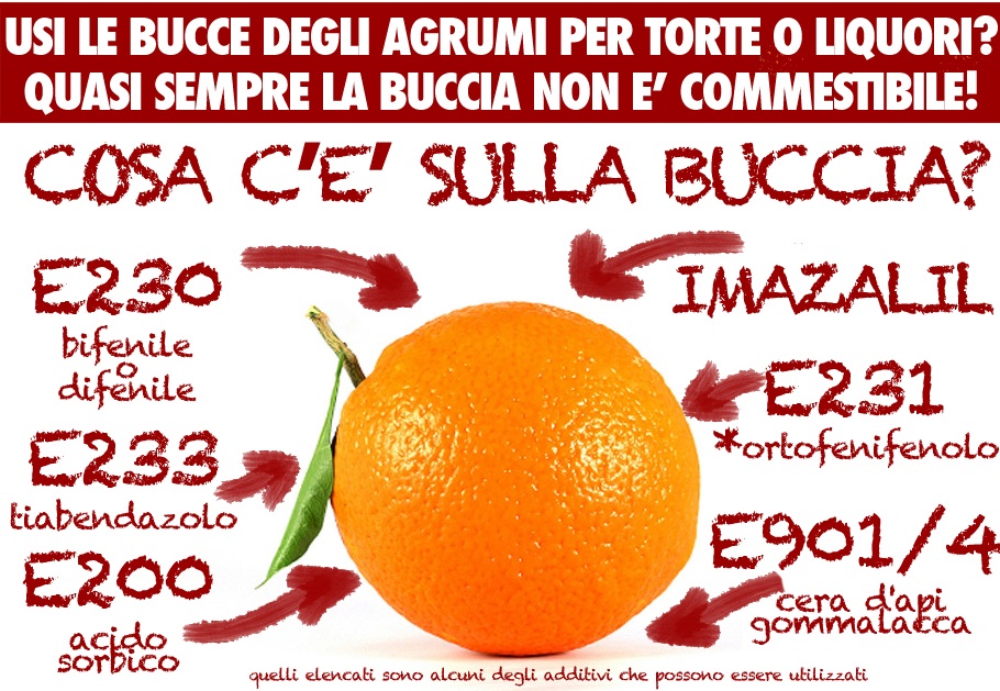 Quanti di voi amano bere del buon limoncino fatto in casa, o quanti si dilettano a confezionare delle squisite torte fatte in casa per l’occasione? Torte al cioccolato, torte di ricotta, ma anche crostate e ciambelle spesso arricchite da un aromatico ingrediente “segreto”: la buccia di un’ arancia o di un limone grattugiata. Tutti i giorni nelle nostre cucine tonnellate di ingredienti provenienti dalla nostra spesa vengono “trasformati” in prelibate pietanze da casalinghe spesso ignare di ciò che servono realmente all’appetito dei loro commensali. Potrebbe essere questo il caso delle bucce degli agrumi utilizzate in cucina per aromatizzare dolci e crostate o per fabbricare in casa dei liquori dal sapore antico e genuino. Ma quanti di questi agrumi hanno bucce veramente commestibili? E come può il consumatore finale evitare di portare nelle proprie dispense cibi non del tutto adatti ad un impiego “puramente” alimentare? Cerchiamo di dare qualche semplice informazione in merito. Gli agrumi, in particolare quelli di derivazione non biologica, sono comunemente trattati con additivi e sostanze, per lo più tossiche alle alte concentrazioni, che evitano la formazione di muffe o danno ai frutti un aspetto più scintillante e lucido.