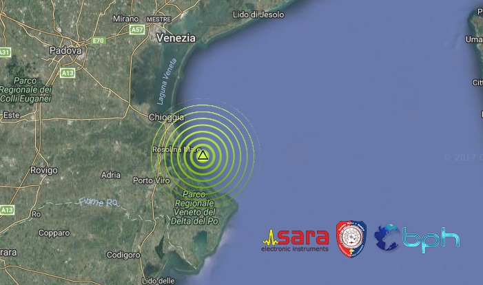 Epicentro in Adriatico di fronte a Rosolina Mare (RO)