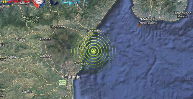 Una scossa di terremoto di magnitudo 2.9 è avvenuta alle ore 02:13:35 italiane nei pressi della costa Catanese, con ipocentro in mare alla profondità di 9,1 km. I comuni più vicini all’epicentro sono stati MASCALI(CT) RIPOSTO(CT) GIARRE(CT)