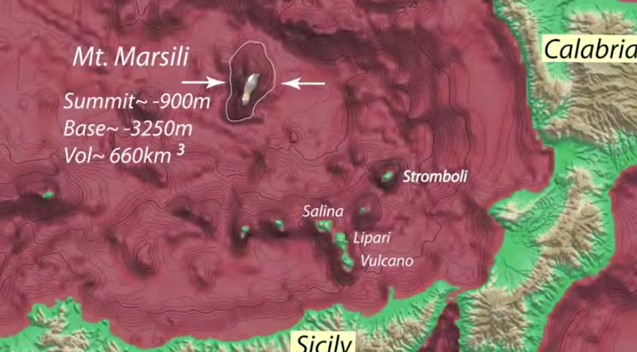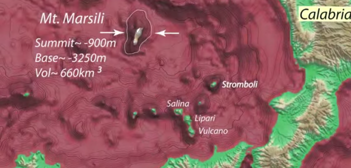 Il Marsili, è un enorme vulcano che giace sui fondali del Mar Tirreno, tra Calabria e Sicilia il più gande vulcano sottomarino europeo. E’ considerato sulla stregua di un gigante addormentato, ma pur sempre minaccioso e, se mai un giorno dovesse risvegliarsi, potrebbe essere potenzialmente catastrofico.