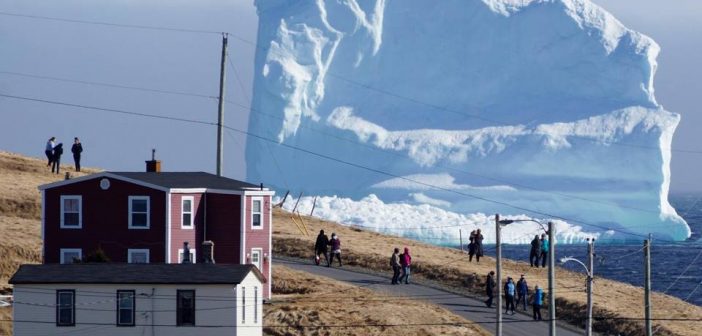 Canada. Spunta un gigantesco iceberg dietro un villaggio sperduto… che immediatamente viene preso d’assalto dai turisti