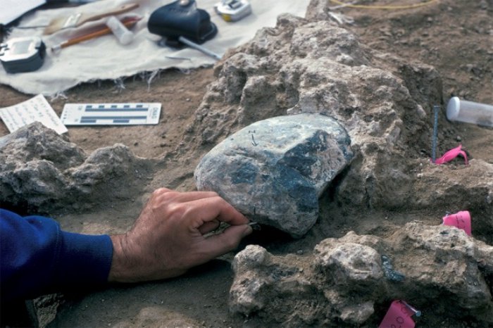 Vicino ai reperti, Deméré rinvenne anche alcuni grossi frammenti di roccia, che presentavano fratture e segni di usura e che, secondo il paleontologo, non potevano essere state trasportate dai flussi d’acqua – che pure aveva depositato il materiale fangoso all’interno del quale fossilizzarono i resti.