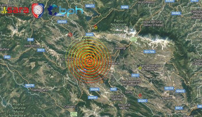 Evento principale distintamente avvertito dalla popolazione in diverse zone dell’Abruzzo, Lazio, Marche e Umbria. Avvertito anche a Roma. Evento preceduto da un’altra scossa di Ml 3.1 due ore prima circa.