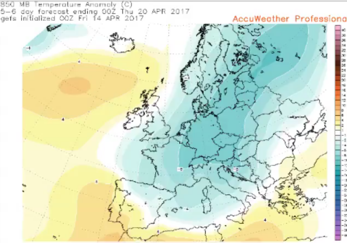 Un nucleo di aria polare potrebbe raggiungere l’Italia intorno al 19 aprile per poi insistere sulla penisola fino al 22 aprile.