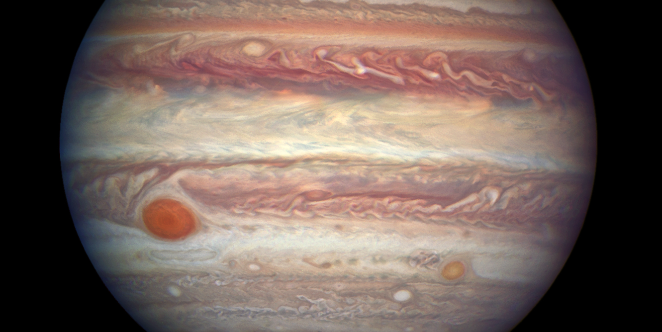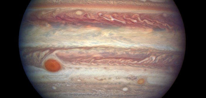 Questa nuova immagine è stata scattata lo scorso 3 aprile dal telescopio spaziale Hubble (Hst) di Nasa ed Esa a quasi 668 milioni di chilometri dalla Terra (relativamente vicino a noi!). Ed è subito spettacolo. Hst ha ripreso perfettamente tutte le peculiarità di Giove, la colorata atmosfera e le due vaste tempeste cicloniche che non possono mai mancare in uno scatto gioviano: la Grande e la Piccola macchia rossa.