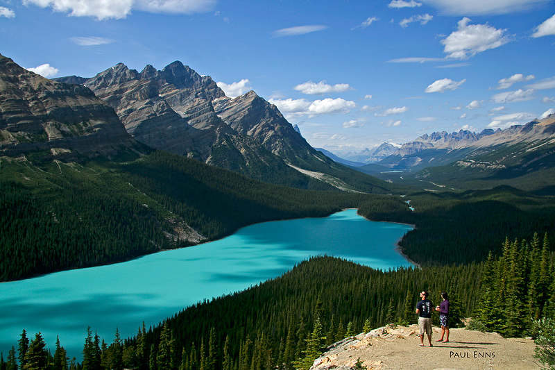 Così azzurro da sembrare dipinto. E anche se sembra uscito da una favola, il Peyto Lake esiste davvero, e non si trova ai Caraibi bensì in Canada, nel cuore del Banff National Park. Basta guardarlo in foto per far venire la voglia di un tuffo, ma qui l’acqua è troppo fredda per farci il bagno. Bisogna accontentarsi di guardarlo da riva o, ancor meglio, da una terrazza che ogni estate viene letteralmente presa d’assalto dai turisti.