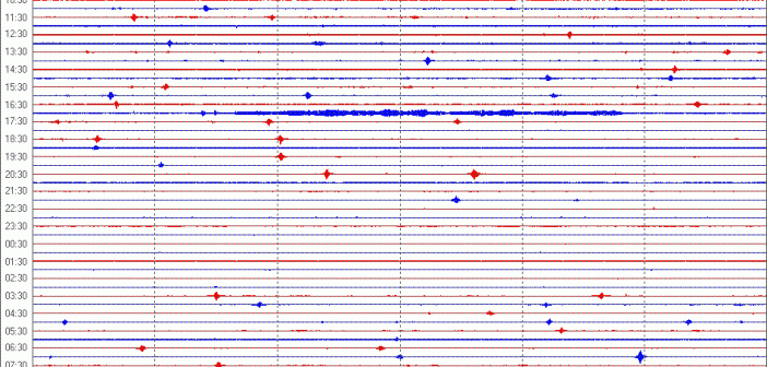Come specificato nel sito dell’Osservatorio Meteo-Sismico di Perugia, questo strumento è stato installato in zona Urbana dunque potrebbero esserci alcuni disturbi antropici, riconducubili quindi alle attvita’ dell’uomo che non devono essere collegati, da chi legge il tracciato, al sopraggiungere di un evento sismico