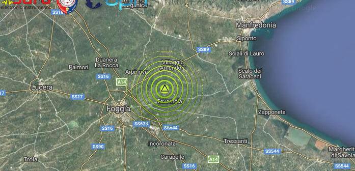 SCOSSA DI TERREMOTO DI Ml 2.6 NELLA ZONA DI FOGGIA IN PUGLIA