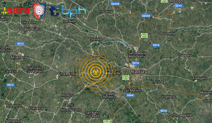 SCOSSA DI TERREMOTO DI ML 3.1 NELLA PIANURA PADANA EMILIANA, IN PROVINCIA DI FERRARA