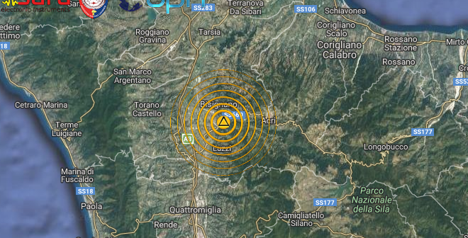 SCOSSA DI TERREMOTO DI Ml 3.1 NELLA ZONA ALLE PENDICI DELLA SILA, NEL COSENTINO IN CALABRIA