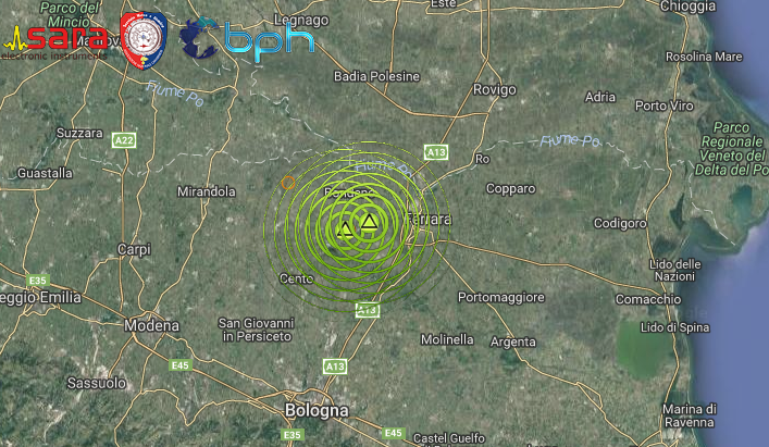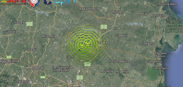 DOPPIA SCOSSA DI TERREMOTO DI ML 2.5 NELLA NOTTE NELLA PIANURA PADANA EMILIANA, NEL FERRARESE