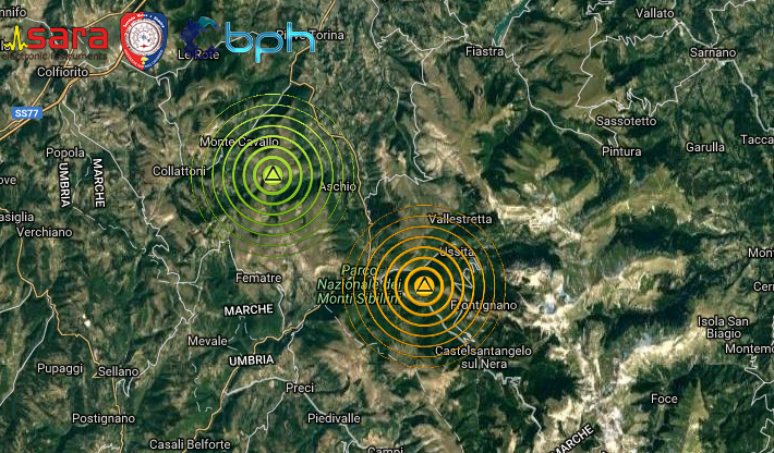 DOPPIA SCOSSA DI TERREMOTO DI Ml 3.2 E Ml 2.3 NELLA ZONA TRA USSITA (MC) E MONTE CAVALLO (MC) NELLE MARCHE