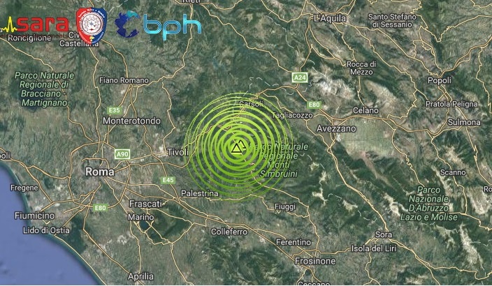 DOPPIA SCOSSA DI TERREMOTO DI Ml 2.4 E Ml 2.2 NELLA NOTTE SUI MONTI SIMBRUINI, AL CONFINE TRA LAZIO E ABRUZZO
