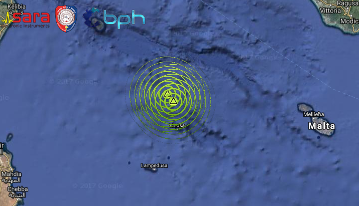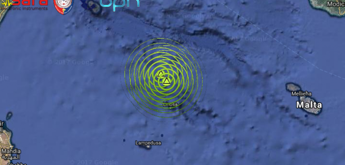 DOPPIA SCOSSA DI TERREMOTO DI Ml 2.9 E Ml 2.6 IN CINQUE MINUTI A NORD DI LINOSA, NEL CANALE DI SICILIA