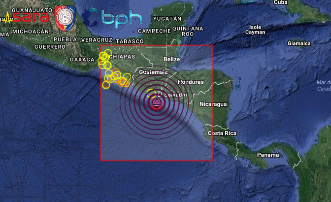 FORTE SCOSSA DI TERREMOTO DI Mw 6.2 AL LARGO DELLE COSTE DI EL SALVADOR, NEL PACIFICO