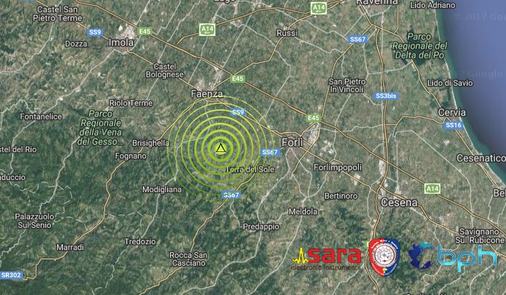 Epicentro nella zona tra Castrocaro Terme (FC) e Faenza (RA).