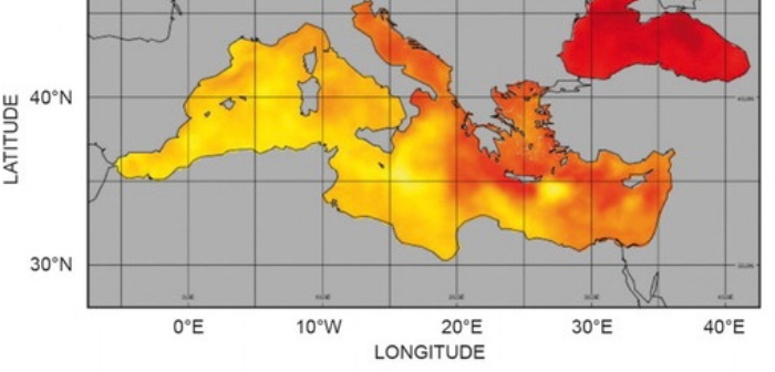 Forte riscaldamento del Mediterraneo del nord e del Mar Nero