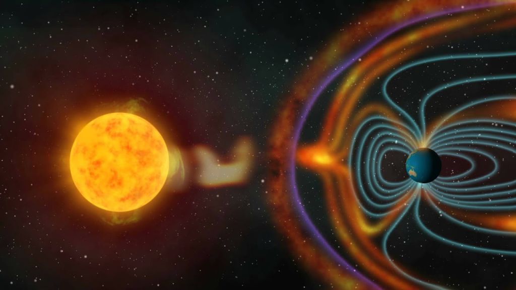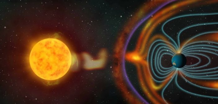 Ma il vento solare, essendo costituito da particelle cariche in movimento, per le leggi della Fisica genera un campo magnetico viaggiante alla velocità di 300/800 km/sec all’interno dello spazio interplanetario.