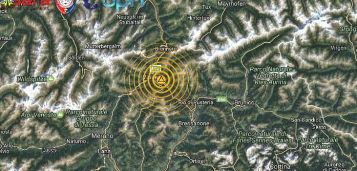 SCOSSA DI TERREMOTO DI Ml 3.0 NELLA ZONA DI VIPITENO (BZ) IN TRENTINO ALTO ADIGE