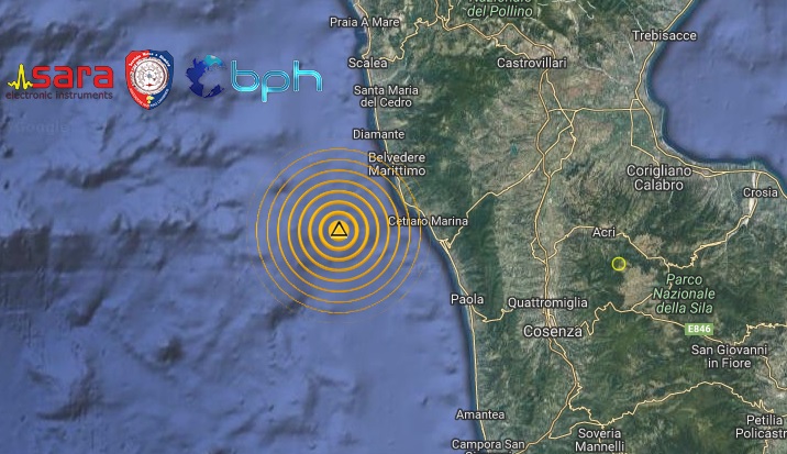 SCOSSA DI TERREMOTO DI Ml 3.1 NEL MAR TIRRENO, AL LARGO DELLE COSTE CALABRESI