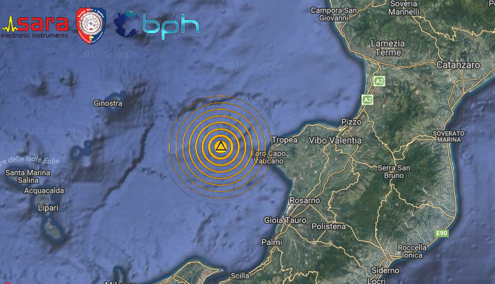 SCOSSA DI TERREMOTO DI Ml 3.2 NEL MAR TIRRENO, AL LARGO DELLE COSTE CALABRESI