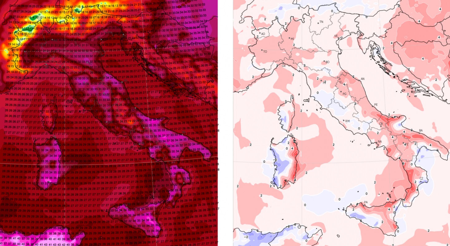 Mentre la nuova settimana al Nord porterà un aumento dell’instabilità ed un progressivo calo termico nelle aree alpine, la situazione risulterà opposta nelle regioni del Centro Sud che vedranno un’accentuarsi del caldo. Tra martedì e mercoledì le temperature aumenteranno e le regioni piu’ colpite risulteranno Sardegna orientale, Calabria, Sicilia e le aree tra Puglia e Molise. In queste aree il caldo risulterà intenso con picchi estremi anche di +38/41°C localmente!