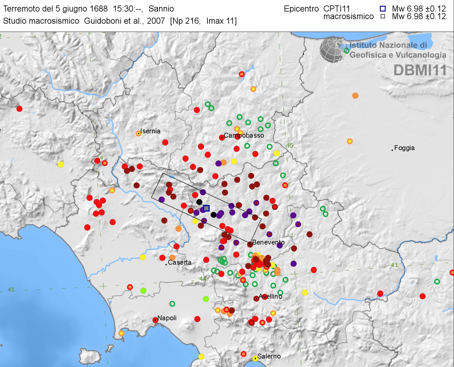 Effetti del terremoto del 5 giugno 1688 [fonte: DBMI11].