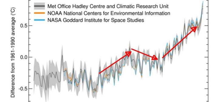 Al riguardo vi è stato un forte rialzo termico nel periodo 1920-1950 quando i gas serra antropici erano insignificanti; poi addirittura il calo del Global Warming tra il 1960 e il 1970 quando il consumo di combustibili fossili era già notevole e infine il forte aumento del GW dal 1975 al 2000, che non può essere giustificato colo con il crescente aumento di combustibili