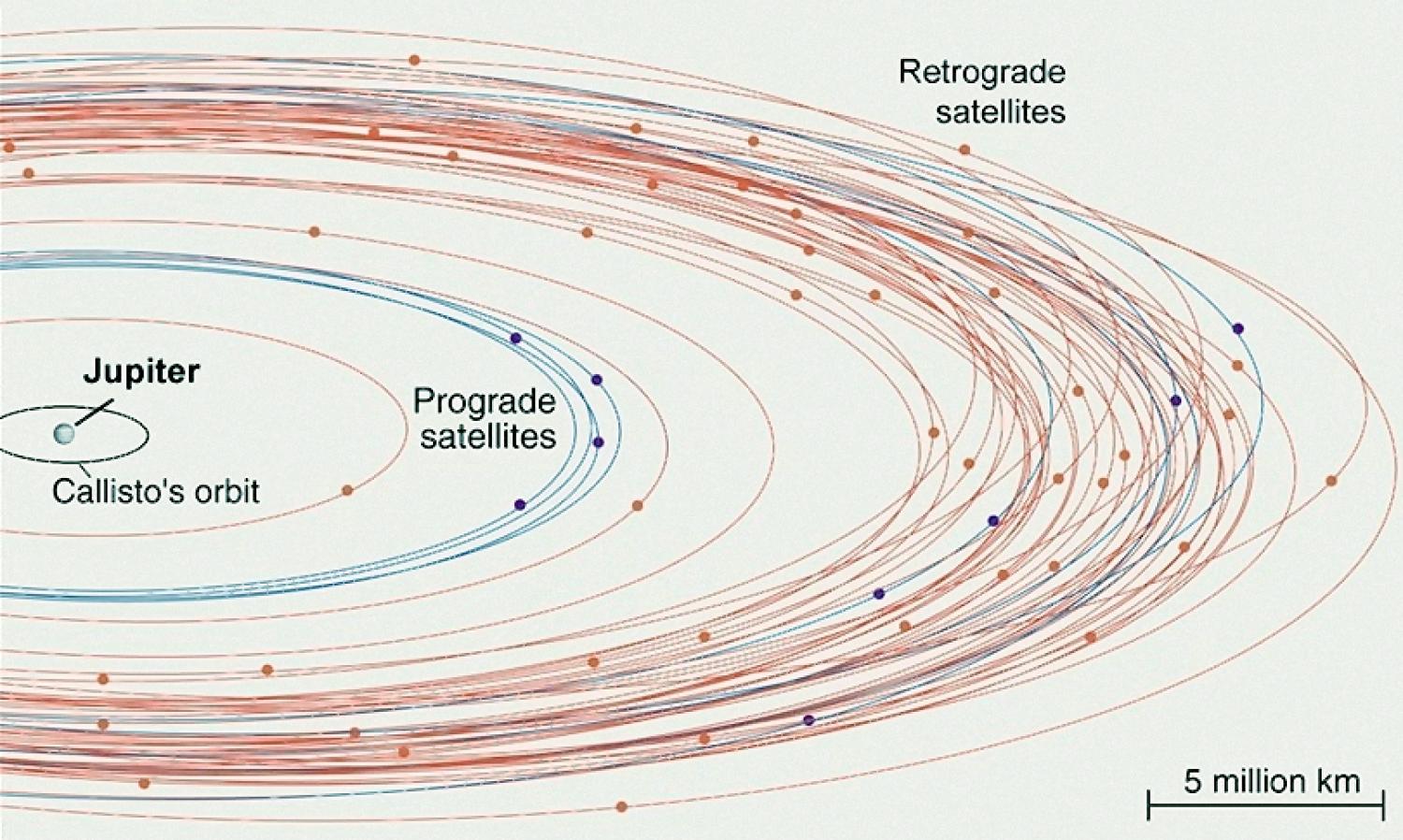 Riflettendoci, la fascia di satelliti retrogradi (in rosso nell’immagine di apertura) può essere definita un “anello diffuso esterno”; del resto non ha molto senso chiamare “luna” un oggetto di pochi chilometri che orbita insieme a dozzine di altri nella stessa regione, esattamente come non ha senso chiamare “pianeta” un corpo che fa parte della fascia principale degli asteroidi o di Kuiper.