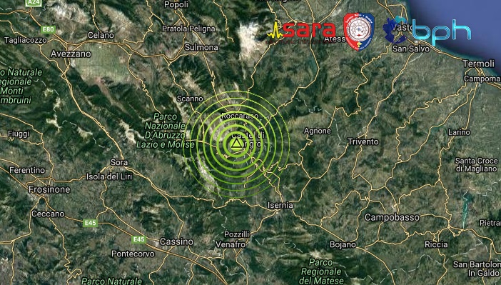 SCOSSA DI TERREMOTO DI Ml 2.4 NELLA ZONA DI CASTEL DI SANGRO (AQ), AL CONFINE TRA ABRUZZO E MOLISE