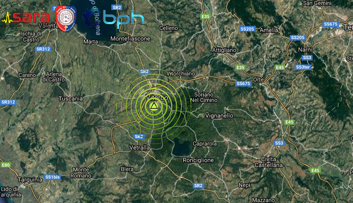SCOSSA DI TERREMOTO DI Ml 2.4 NELLA ZONA DI VITERBO NEL LAZIO