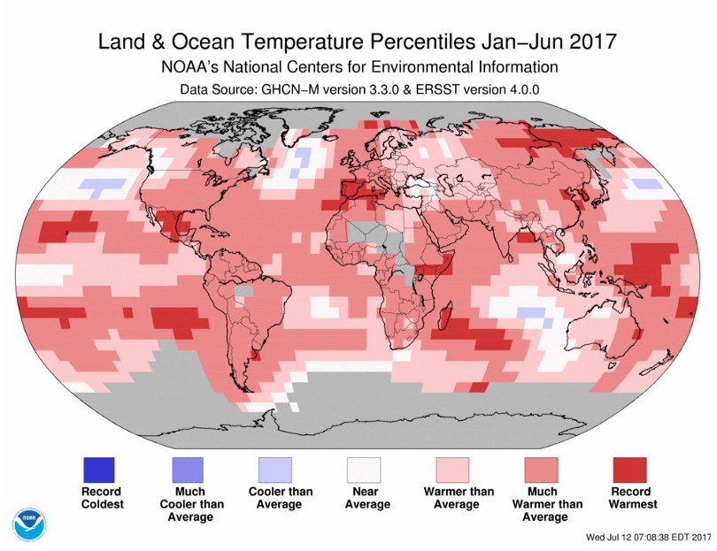 Il rapporto Noaa segnala le altre anomalie climatiche del giugno 2017: