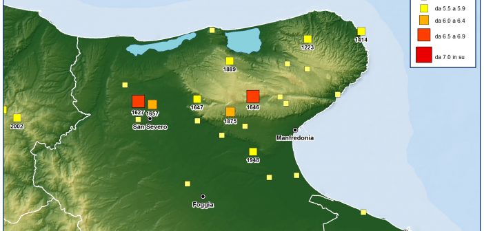 La fonte è il “Catalogo dei forti terremoti in Italia dal 1461 a.c. al 1990 dell’Istituto Nazionale di Geofisica Italiano. Il sisma sul Gargano del 1627 ha avuto un’intensità massima (complessiva di diverse scosse) dell’X grado della scala Mercalli (per intenderci superiore a L’Aquila, all’Irpinia ed al Friuli), ha provocato la morte di molte migliaia di persone, ha causato fratture nel terreno, variazioni nel regime idrico delle acque sotterranee ed un forte maremoto lungo le coste della Puglia e del Molise.