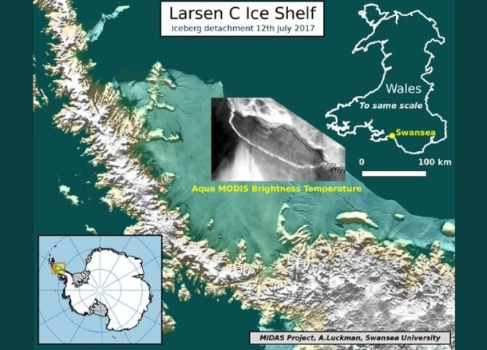 Come spiegano i ricercatori del britannico Project Midas, che da anni seguono l’evoluzione del continente bianco, si tratta di uno degli iceberg «più grandi mai registrati», che ha abbandonato per sempre la piattaforma di ghiaccio Larsen C, modificando il profilo stesso dell’Antartide: la linea della frattura è lunga infatti oltre 200 chilometri, gli stessi che in Italia dovremmo percorrere per andare da Roma a Napoli.