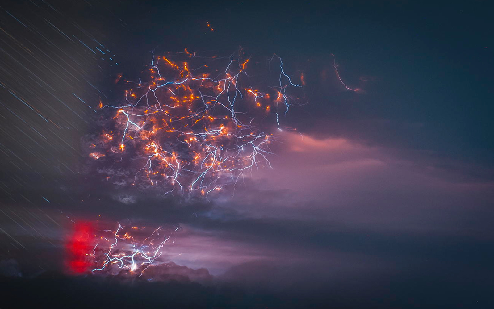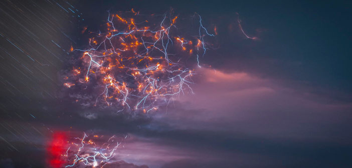 Eruzioni vulcaniche e fulmini in Cile. Fotografia di Francisco Negroni