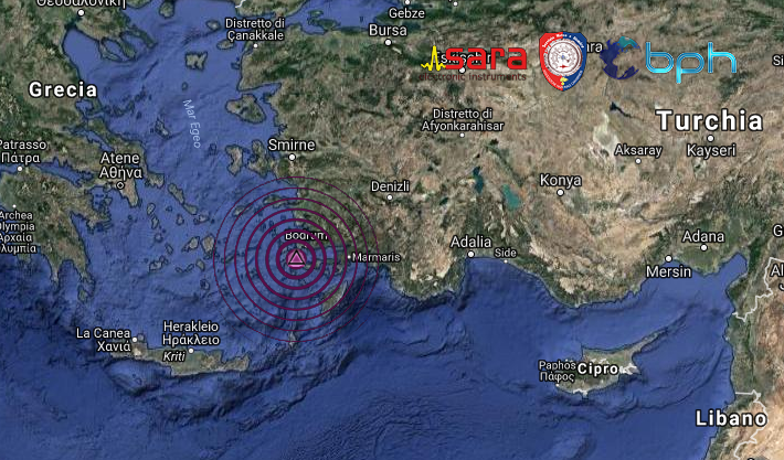 L’epicentro è stato localizzato in mare, in prossimità dell’isola di Kos, molto vicino a Bodrum.