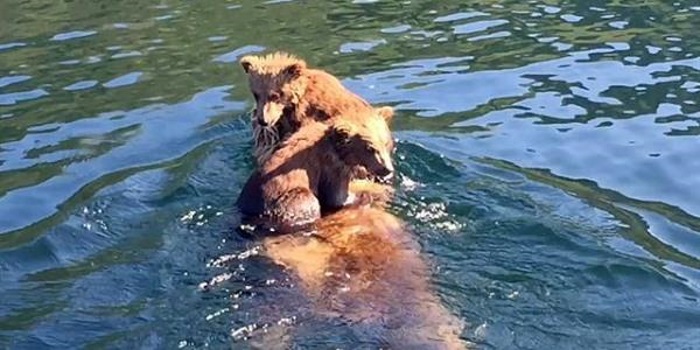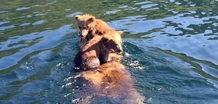 È il forte legame tra la madre e il cucciolo ad aver spinto i piccoli a rimanere attaccati alla madre, istintivamente. Mentre mamma orsa entrava in acqua, i due cuccioli hanno capito subito cosa fare e si sono aggrappati fiduciosi a lei. Una volta raggiunta la riva, l’orso ha messo giù i due passeggeri.
