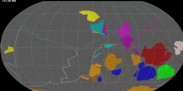 Il confronto tra le terre emerse di circa 700 milioni di anni fa e quelle di oggi.