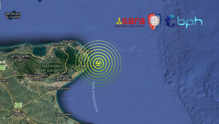 SCOSSA DI TERREMOTO DI Ml 2.9 NEI PRESSI DELLA COSTA DEL GARGANO IN PUGLIA