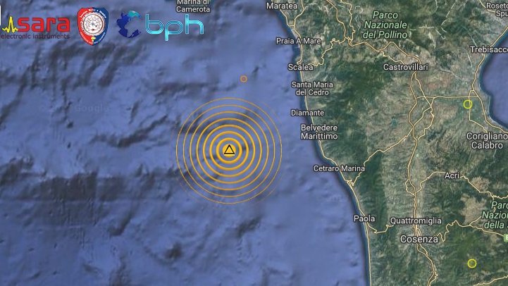 Ipocentro in mare al largo della costa Cosentina a 279 km di profondità. Evento non avvertito dalla popolazione
