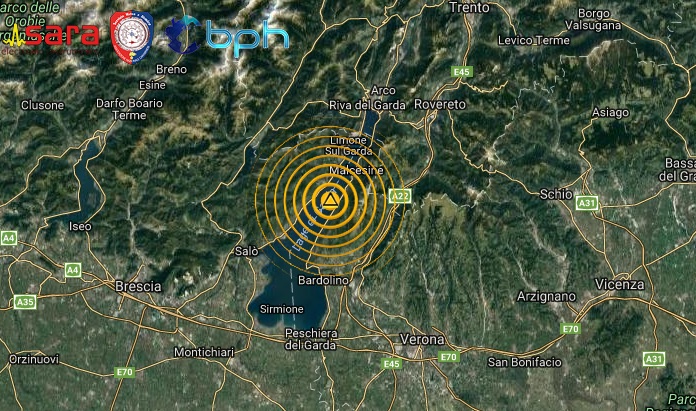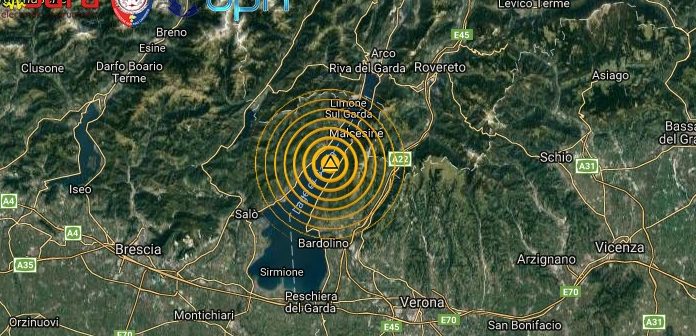 Una scossa di terremoto di magnitudo 3.6 è avvenuta alle ore 19:03:55 italiane nella zona del Lago di Garda, con ipocentro alla profondità di soli 3,6 km.