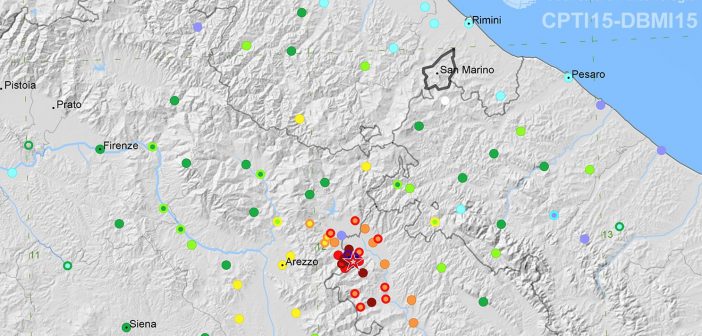 Rappresentazione cumulativa semplificata dei terremoti che fra 1916 e 1920 attraversano tutto l’Appennino Settentrionale, DBMI15.
