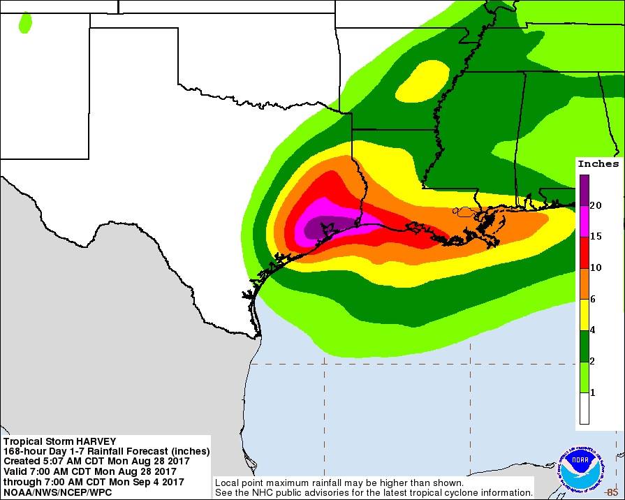A Houston, la capitale del Texas, la situazione è devastante e, secondo il National Weather Service  dovrebbe continuare a piovere forte anche oggi e domani, aggiungendo altri 10 pollici di acqua ai 40/50 già caduti,  E’ bastato questo perché l’uragano Harvey – declassato ora a tempesta tropicale – diventasse quello che subito il governo statale repubblicano e il presidente Ud sa Donald Trump si sono subito precipitati  definire  «un evento senza precedenti».