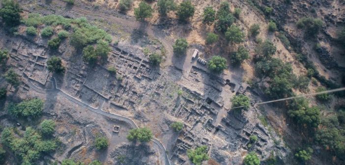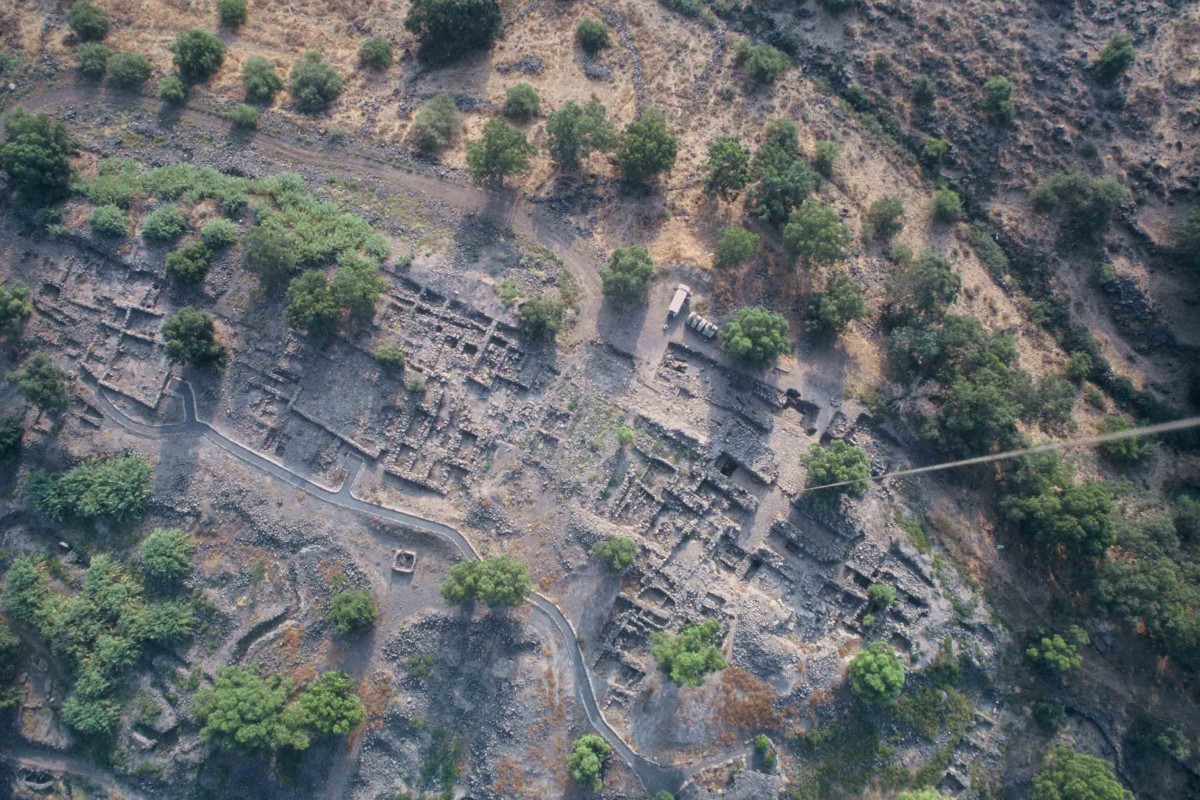 Una veduta aerea degli scavi di El-Araj, forse l’antica città di Betsaida-Julia e villaggio in cui ebbero i natali tre degli apostoli di Gesù. Fotografia di Zachary Wong